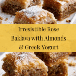 Keywords: Rose baklava, baklava recipe, rosewater dessert, almond baklava, Greek dessert, filo pastry dessert, spiced nuts, rose syrup