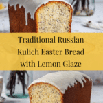 Keywords: Kulich, Russian Easter Bread, traditional bread, sweet bread, poppy seeds, lemon glaze, festive bread