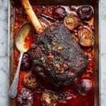 This slow-cooked harissa lamb is a comforting, flavorful dish perfect for a special family meal. The tender, spiced meat pairs beautifully with a rich onion gravy that’s full of warmth and depth.