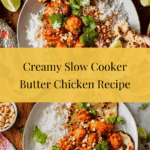 This Slow Cooker Butter Chicken is a rich, flavorful Indian-inspired dish featuring tender chicken thighs marinated in yogurt and spices, then slowly cooked to perfection in a fragrant tomato and spice sauce. Served with basmati rice, naan bread, and garnished with toasted almonds, fresh coriander, and lime wedges, it’s a comforting and satisfying meal that’s easy to prepare and perfect for busy days.