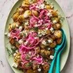 This smashed potato, dill, feta, and pickled red onion salad is a delightful mix of textures and flavors. Crispy yet tender potatoes combine with tangy pickled onions and creamy feta for a fresh, vibrant dish that’s perfect as a side or a light lunch.