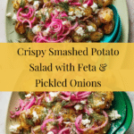 Keywords: smashed potato salad, pickled red onion, feta cheese salad, roasted potatoes, dill salad, Mediterranean salad, easy potato recipe, vegetarian salad