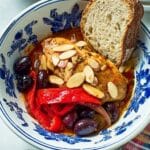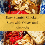 A hearty and flavorful Spanish chicken stew featuring tender chicken thighs simmered with smoky paprika, sweet red pepper, and tangy white wine vinegar, enriched with black olives and toasted almonds. This comforting dish is perfect served over rice or with crusty bread for a satisfying meal.