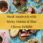 Steak sarnies with sticky onions and blue cheese make for a deliciously satisfying meal that’s perfect for lunch or a casual dinner. The combination of tender steak, sweet caramelised onions, and tangy blue cheese on sourdough is simply irresistible.