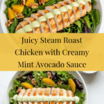 This Steam Roast Chicken with Mint Sauce and Green Salad is a fresh and flavorful dish perfect for a light yet satisfying meal. The tender, steam-roasted chicken pairs beautifully with a creamy avocado mint sauce and a crisp mixed green salad with walnuts and orange segments. It’s an elegant combination that’s surprisingly easy to prepare.