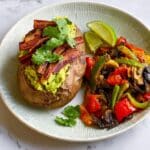 - Prepare Sweet Potatoes for Serving: Once baked, slice the sweet potatoes almost all the way through lengthwise and place them on serving plates. Top each potato with the chopped or mashed avocado, then squeeze some lime wedges over the top. Spoon the black bean mixture over or alongside the potatoes.