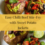 This stir-fry chilli beef with sweet potato jackets is a satisfying, flavorful meal that combines tender beef with smoky spices and vibrant vegetables. The sweet potatoes serve as a hearty base, making this a wholesome dish perfect for a nutritious dinner.