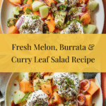 This Sweet Melon, Curry Leaf & Burrata Salad is a refreshing and exciting blend of flavors that combines the sweetness of ripe melon with the aromatic punch of curry leaves. Creamy burrata adds a luscious texture, making this salad a perfect light meal or elegant starter.