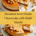 This sweet potato cheesecake offers a delightful twist on a classic dessert, combining creamy layers with warm spices and a crunchy biscuit base. Finished with a drizzle of maple syrup and caramel popcorn, it’s a perfect treat for cozy evenings or special occasions.