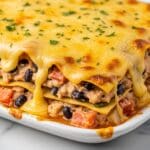 This Taco Lasagna recipe is a delicious fusion dish combining the classic flavors of Mexican tacos with the comforting layers of Italian lasagna. Featuring seasoned ground beef, black beans, a blend of enchilada sauce and salsa, and creamy ricotta cheese, all layered between tender lasagna noodles and topped with melted cheddar cheese, it’s a perfect meal for family dinners or gatherings that offers bold flavors and hearty satisfaction.