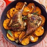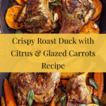 This tender roast duck with citrus & carrots recipe combines slow-roasted duck confit legs with sweet and tangy citrus-infused carrots, garlic, and herbs. Cooked in the oven to achieve golden, succulent meat and a syrupy sauce, this dish is perfect served alongside creamy mashed potatoes and fresh watercress for a comforting yet elegant meal.