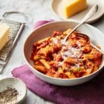 - Reserve some pasta water to adjust sauce consistency as needed.