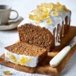 This vegan ginger loaf cake is a moist and flavorful treat, packed with warming ground ginger, sweet muscovado sugar, and zingy stem ginger. Topped with a tangy lemon and ginger syrup icing and extra slices of crystallised ginger, it makes a perfect cozy snack or dessert that’s entirely plant-based.