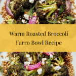Keywords: roasted broccoli farro recipe, warm salad, vegetarian farro dish, garlic lemon dressing, easy healthy meals, roasted vegetables with grains